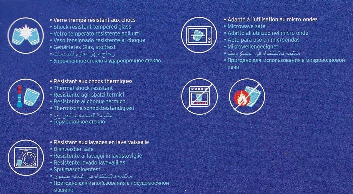 Het merk Duralex laat zich kenmerken door haar producten gemaakt van gehard glas. Gehard glas wordt op een opvallende wijze geproduceerd. Als eerst wordt het glas verhit tot een temperatuur van ongeveer 700 ℃. Na deze verhitting wordt het glas in een snel tempo gekoeld, waardoor het glas weerstand kan bieden aan thermische schokken van 130 °C tot – 20 °C. Gehard glas is 2,5 keer zo sterk dan gegloeid glas en is te vergelijken met de sterkte van een autovoorruit. Gehard glas is dus hét perfecte materiaal voor glazen, koppen en schalen. Bovendien is gehard glas zeer geschikt voor gebruik van de magnetron- en vriezer.