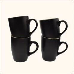Orange85 Espresso Kopjes – Zwart – Set Van 4 – Met Bamboe Onderzetter – Met Oor – Koffiekopjes