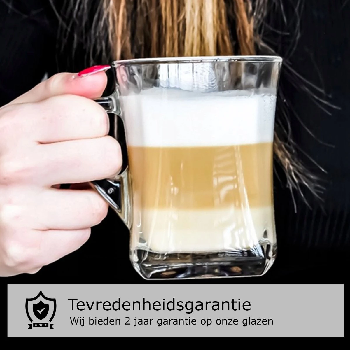 Deze thee- en/of cappuccinoglazen liggen perfect in de hand, en doordat het glas hittebestendig is, blijft jouw thee of cappuccino lekker warm en houd jij je handen koel.