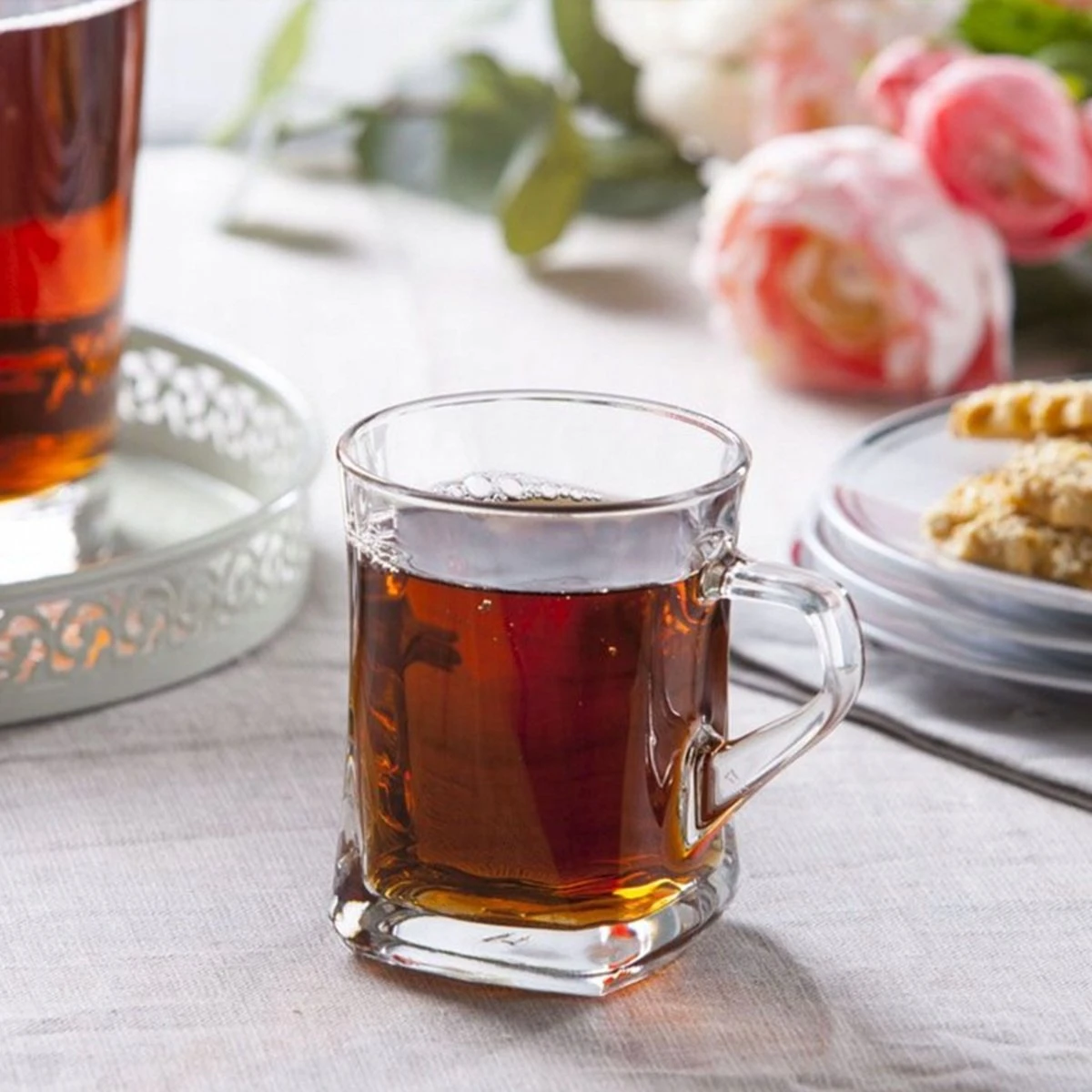 De theeglazen met oor zijn vaatwasser- en krasbestendig
