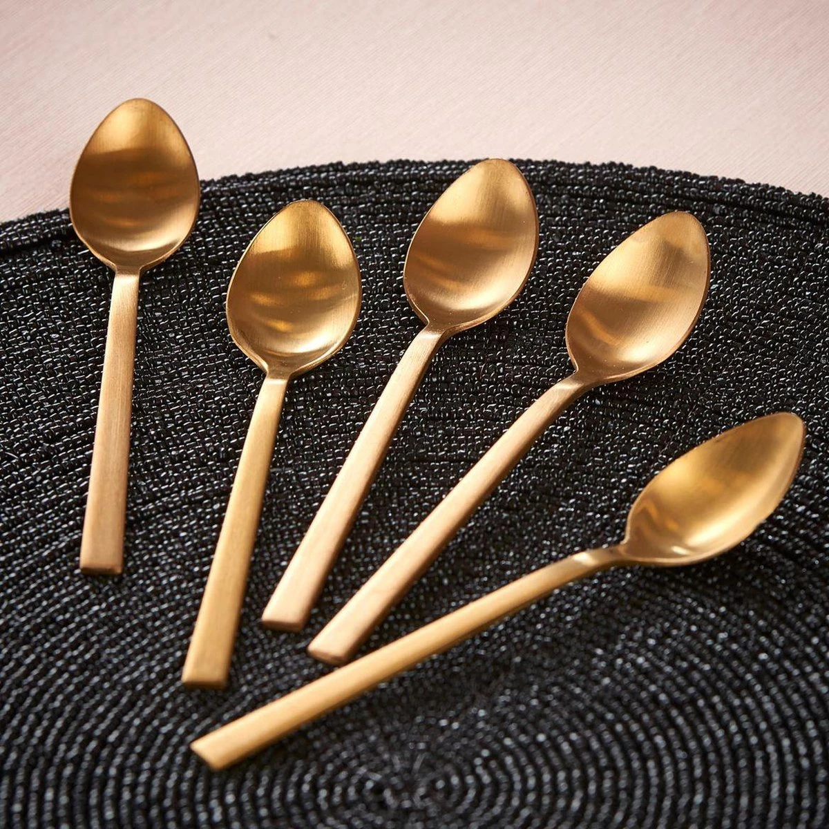 De Vintage Goudkleurige theelepels hebben zachte lijnen en vloeiende rondingen. Goud is één van de trendkleuren van dit moment. De kleur is goed te combineren met koper, wit, zwart, zilver en hout.