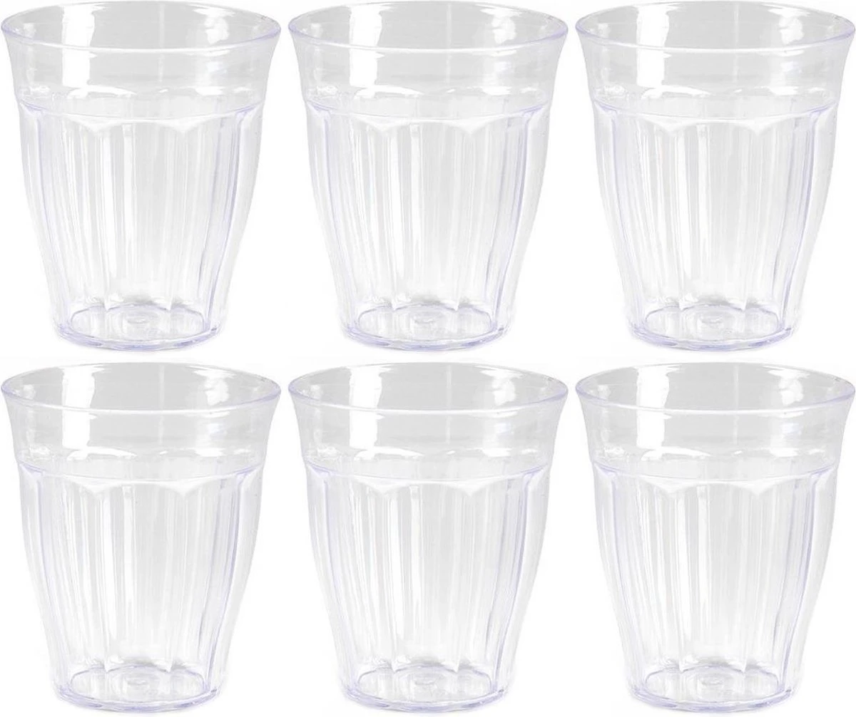 12x Kunststof drinkglazen/waterglazen Picardie transparant 250 ml. 12 onbreekbare transparante water/sap glazen, met ieder een inhoud van 250 ml. De glazen gemaakt zijn van transparant sterk kunststof en daardoor ideaal voor gebruik door kinderen en/of op de camping of bij een picknick. Picardie glazen hebben een tijdloos en ergonomisch ontwerp en zijn stapelbaar, waardoor ze weinig ruimte innemen in het keukenkastje. Aantal glazen: 12x stuks. Materiaal: kunststof. Afmeting per glas: ca. 8 x 8 x 9 cm. Inhoud per glas: 250 ml. Type: Picardie. Vaatwasmachinebestendig: ja, geschikt voor in de vaatwasser. Drinkglazen/waterglazen keuken benodigdheden/accessoires. Stapelbare glazen.