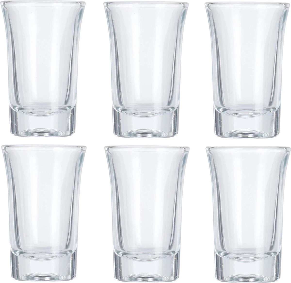 12x shotglazen / borrelglaasjes, 40 ml. Transparant shotglas, gemaakt van glas. Inhoud: Ongeveer 4,0 cl. Inhoud set: 2x 6 shotglaasjes.