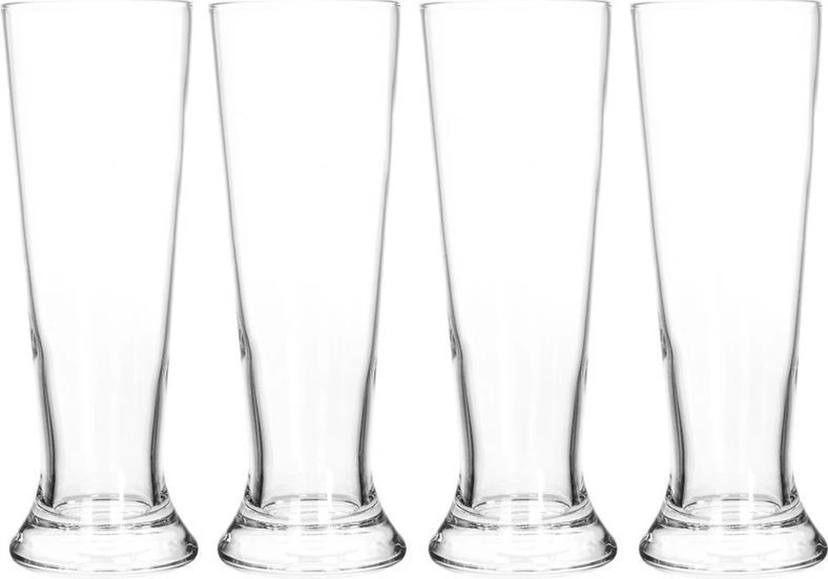 Een set van 4 bierglazen met een inhoud van 370ml. Een glas heeft een afmeting van ca. 7 x 20 cm. Geschikt voor in de vaatwasser.