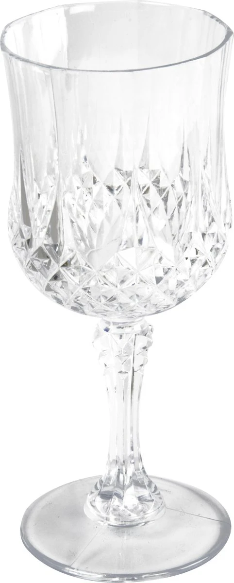 6x stuks herbruikbare kunststof wijnglazen 200 ml. Set herbruikbare wijnglazen met kristaleffect. Ideaal voor op de camping, tijdens een picknick/barbecue of een feestje! Geschikt voor in de vaatwasser. Inhoud: ongeveer 200 ml. Afmetingen per stuk: ongeveer 6,5 x 15,5 cm.