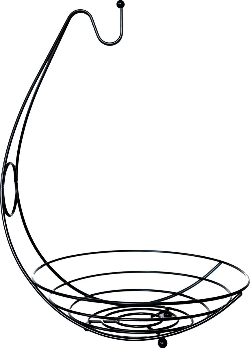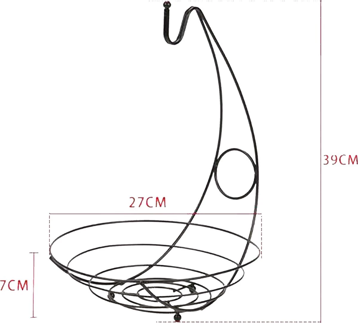 Een ruime, esthetische en stevige fruitschaal. Gemaakt van stabiel zwart metaal, erg handig in gebruik. Naast dat hij gebruikt kan worden om bijv. appels, peren en mandarijnen in de schaal te leggen kan je ook bananen of een tros druiven aan de bananenhouder hangen, wat er stijlvol uitziet. Ook groente passen goed in deze schaal. Het is overal in huis te gebruiken om fruit in te bewaren en/of een tafel of aanrecht sfeervol mee aan te kleden. Kan ook worden opgehangen.
