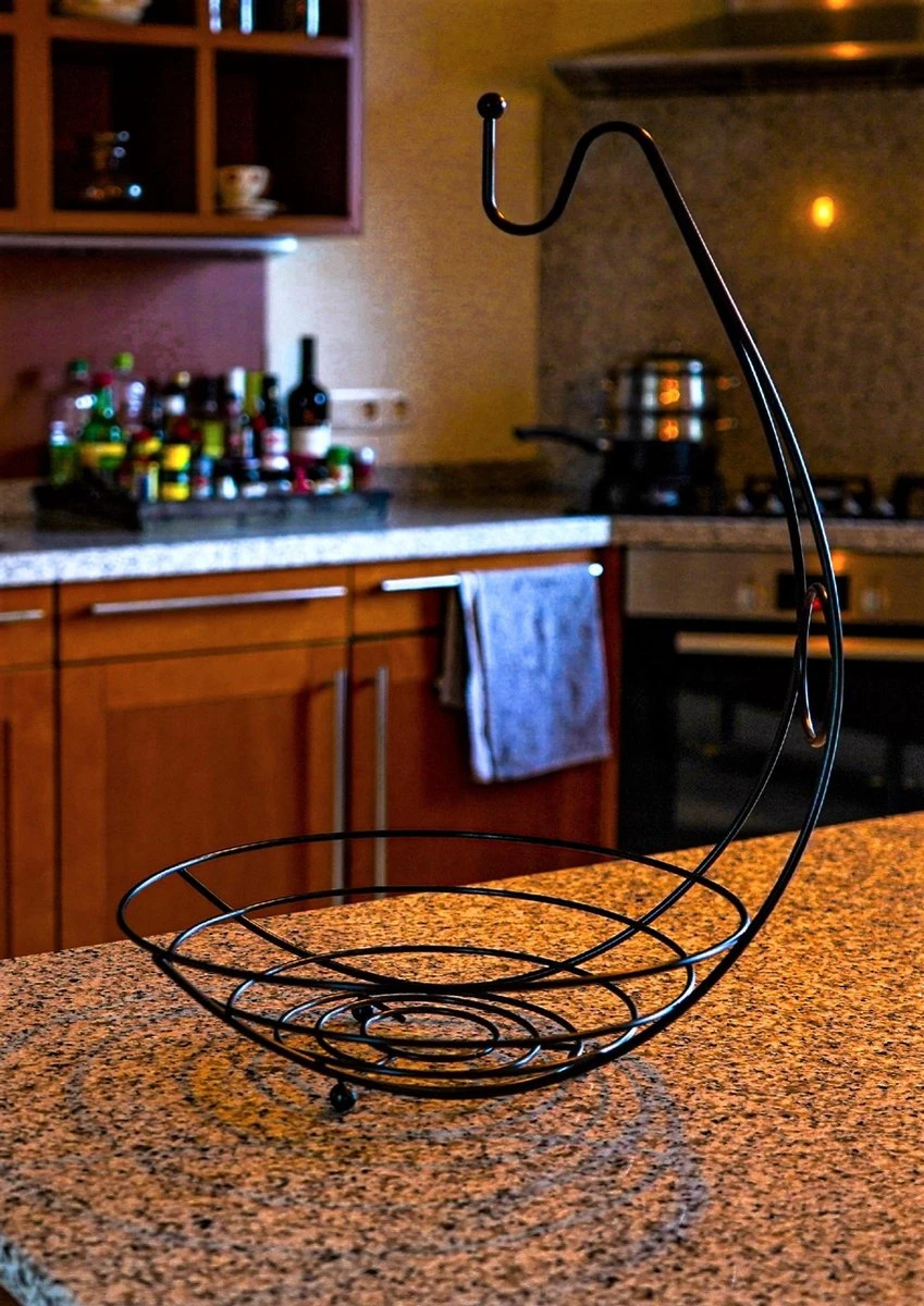 De fruitmand heeft een modern, minimalistisch design en bestaat uit één geheel. De bananenhouder is vastgemonteerd aan de mand. Het bestaat dus niet uit 2 of meerdere onderdelen die in elkaar gezet moeten worden en voorkomt daarmee ongemak en moeite. Bovendien, zal de fruitmand niet rammelen of wiebelen maar ten alle tijden stevig staan.