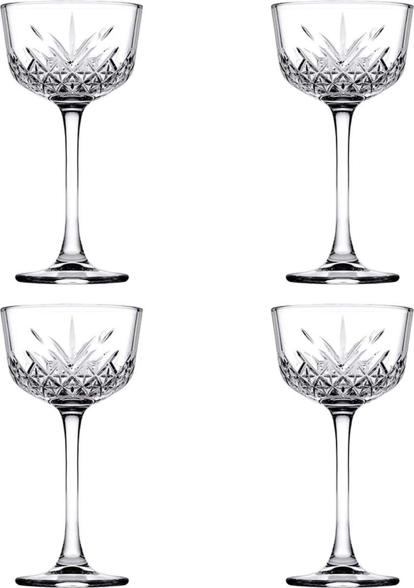 Deze opvallende Nick & Nora cocktailglazen uit de serie Timeless hebben een prachtige hoge ranke steel, waarmee je de glazen goed kunt vastpakken en je drankje lekker koel blijft! Met hun bijzondere hoekige glasbewerking maken zij iedere cocktail tot een ware traktatie. De cocktailglazen hebben een robuuste voet, waarmee ze extra stevig staan. Daarnaast zijn deze glazen gemaakt van extreem sterk glas en kunnen na gebruik perfect gereinigd worden in de vaatwasmachine. Met deze cocktailglazen heb je voor iedere feestelijke gelegenheid de juiste glazen in huis. Deze set bestaat uit 4 Nick & Nora cocktailglazen met een inhoudsmaat van 16 cl.
